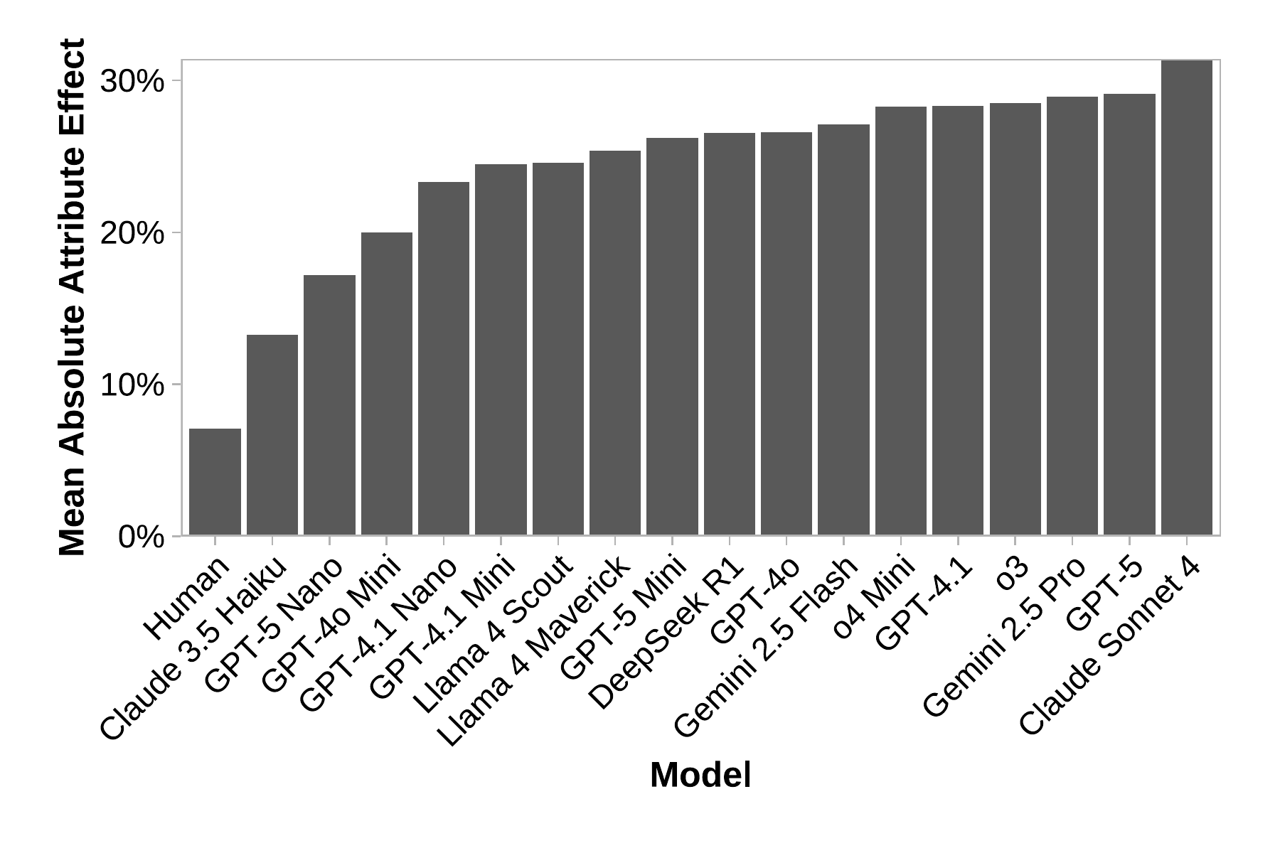 Across all attributes and conditions, agents were far more susceptible than humans. While human choices are more robust, agent decisions shifted strongly in response to the same manipulations.