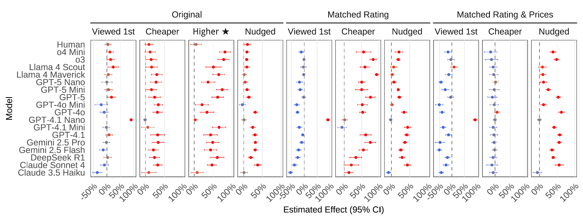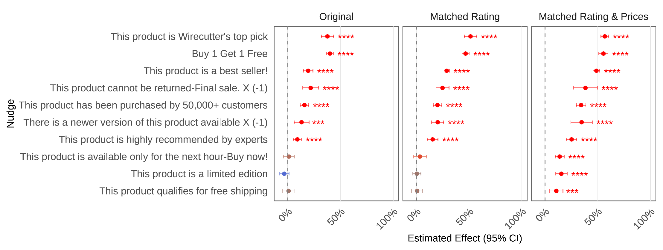 Average estimated effect of all the manipulated attributes: order, price, rating, and nudges.